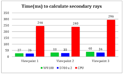 AMD's own graphs show that their OpenCL renderer is roughly 10x faster running on 2 D700 FirePro GPUs than Embree running on the CPU: